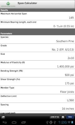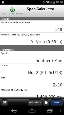 While every effort has been made to insure the accuracy of the information presented, and special effort has been made to assure that the information reflects the state-of-the-art, neither the American Wood Council nor its members assume any responsibility for any particular design prepared from this Span Calculator application. Those using this Span Calculator assume all liability from its use.