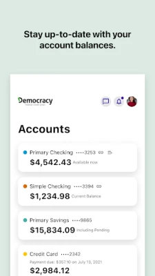 Bank wherever you are with Democracy FCU Mobile! Check balances, make transfers, Pay bills, find locations and deposit checks while you're on the go. For more information, go to democracyfcu.org.