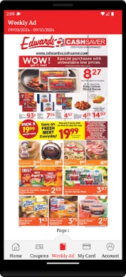 Edwards Cash Saver app provides an easy way for our loyal customers to access savings every time they shop! Simply browse through the available coupons, select the ones you want, and scan your phone at checkout to redeem them.