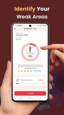 📊 Performance Analytics, & Passing Possibility: Analyze performance over time, monitor your strengths and weaknesses. Additionally, estimate the likelihood of passing the test based on your performance in practice tests.