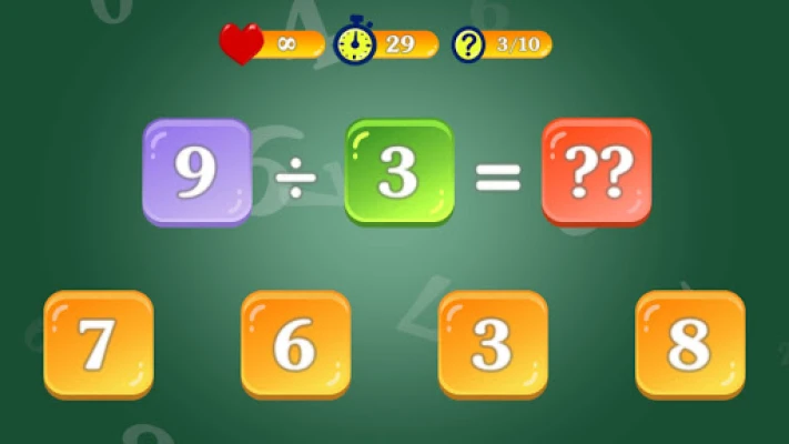 Suitable as a task from an adult child. You choose what numbers will multiply and division, as well as how much time, questions and lives will be at your disposal.