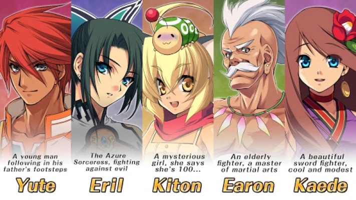 Yute, a young man who has inherited his father’s enthusiasm and strong will, Eril, a young woman who hopes to protect the things that are dear to her, Kiton, a young girl who wants to find out her true identity, Earon, an old teacher who wants to correct the path one of his former pupils has chosen to follow, and Kaede, a woman who follows Earon now...